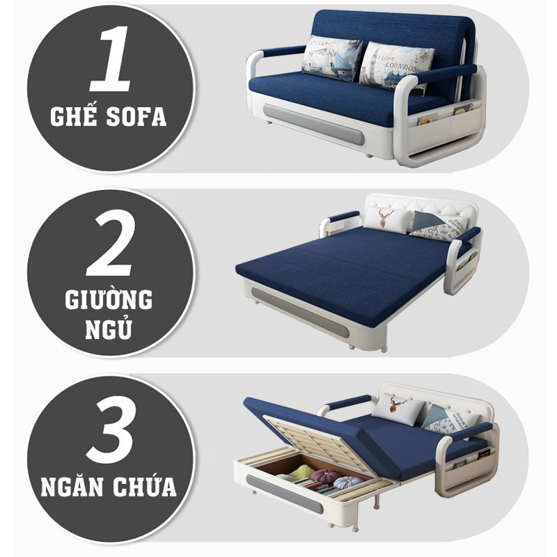 Kiểu Dáng: Ghế Sofa có thể kéo ra thành giường ngủ cao cấp, được trang bị thêm hộc tủ gỗ chứa đồ tiện dụng